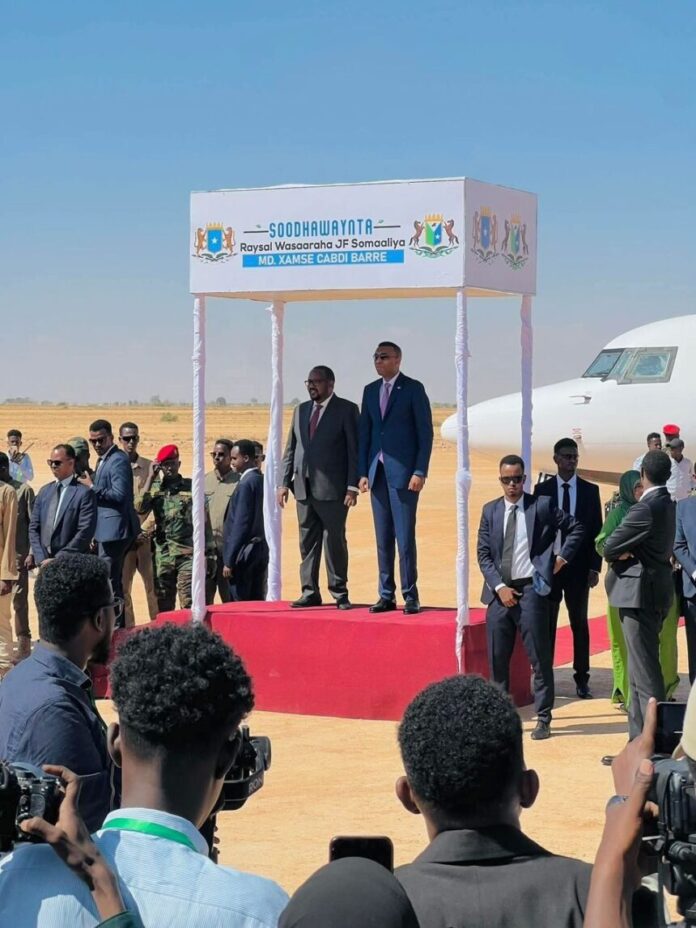 Ra’iisul Wasaaraha iyo wafdigiisa waxaa garoonka diyaaradaha ku soo dhoweeyay masuuliyiin ka tirsan Dowladda Federaalka, Madaxweynaha Dowlad-goboleedka Waqooyi Bari Cabdulqaadir Axmed Aw-Cali (Firdhiye), iyo qaybaha kala duwan ee bulshada ku dhaqan magaalada. Xamsa Cabdi Barre ayaa salaan sharaf ka qaatay ciidanka ammaanka, isaga oo gacan-qaad la yeeshay masuuliyiinta dowladda iyo maamulka deegaanka.