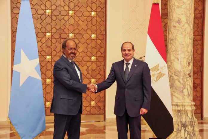 Qaahira — Madaxweynaha Jamhuuriyadda Federaalka Soomaaliya, Mudane Xasan Sheekh Maxamuud, ayaa Axaddii, Febraayo 8, 2026, si heer sare ah loogu soo dhaweeyay Qasriga Madaxtooyada Al-Ittixaadiya ee magaalada Qaahira, halkaas oo uu kula kulmay Madaxweynaha Jamhuuriyadda Carabta ee Masar, Mudane Abdel Fattah Al-Sisi.